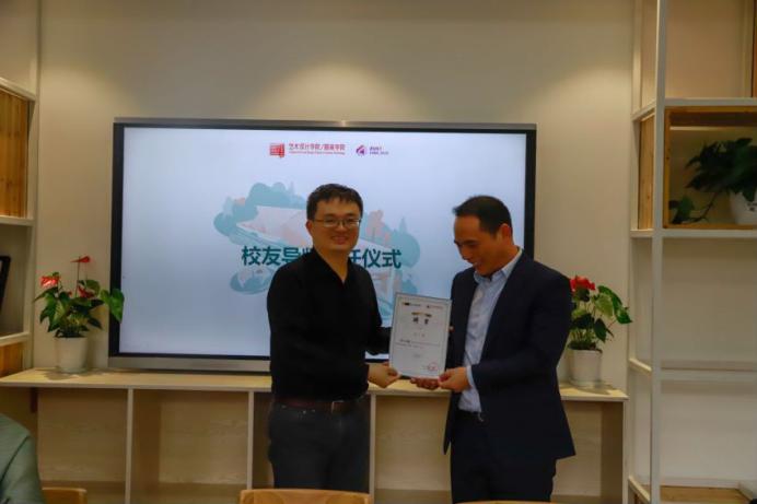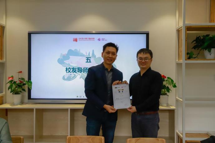 “校友导师”,共同参与人才培养过程,为在校生的“设计人生”和就业创业答疑解惑,此次为陈书新、陈奕两位优秀校友现场发放聘任证书。