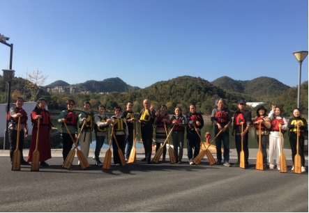 16余名教职工在院工会主席杨勇的带领下积极参与划龙舟比赛;其余40余名教师在院书记詹俊的带领下自行在湖边环湖走。