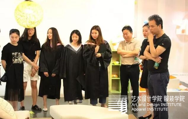 艾可家纺的董事长项叔文先生带领公司主创人员一行与绿城装饰总经理朱光迪先生莅临展厅。项总和朱总肯定了多名同学的毕业作品。项总不仅向同学们提出了许多设计上宝贵的建议,还采购了多名同学的作品,给予同学们莫大的支持与鼓励。项总选中的作品有靠垫、猫窝与单肩包。
