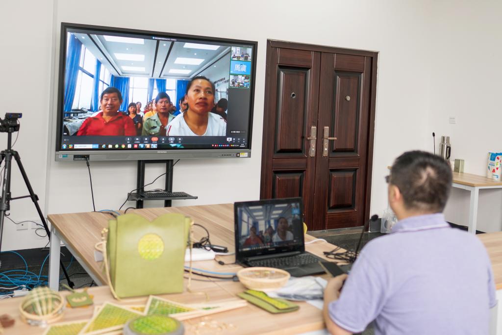 非遗文创团队教师通过视频教学,从竹编工艺品市场前景、经济效益等为学员们进行讲解,并让公司竹编能手对学员进行竹编实操指导,助力易地扶贫搬迁群众脱贫致富。来自当地两个社区的140余名贫困户参与培训。