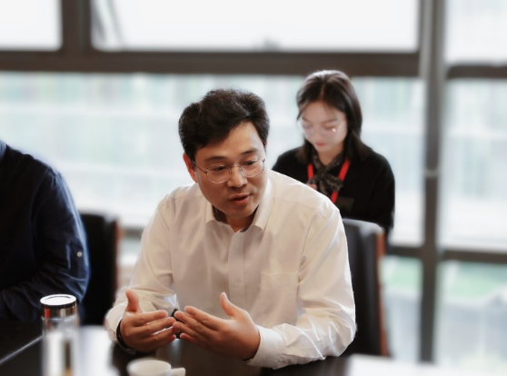 93级校友陈奕先生致欢迎辞,陈奕先生对单校长一行的到来表示热烈欢迎,并详细介绍了公司发展的现状以及对未来的战略思考。