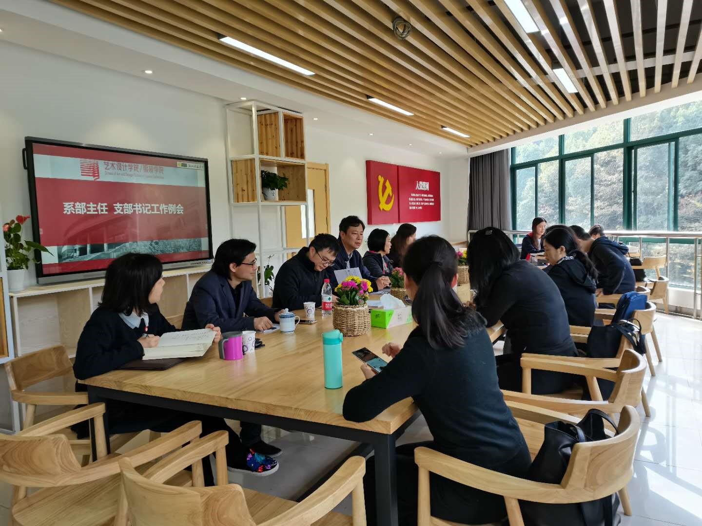 在“四友之家”召开全体支部书记和系部主任工作例会,集中学习上级文件精神,研究双赢彩票