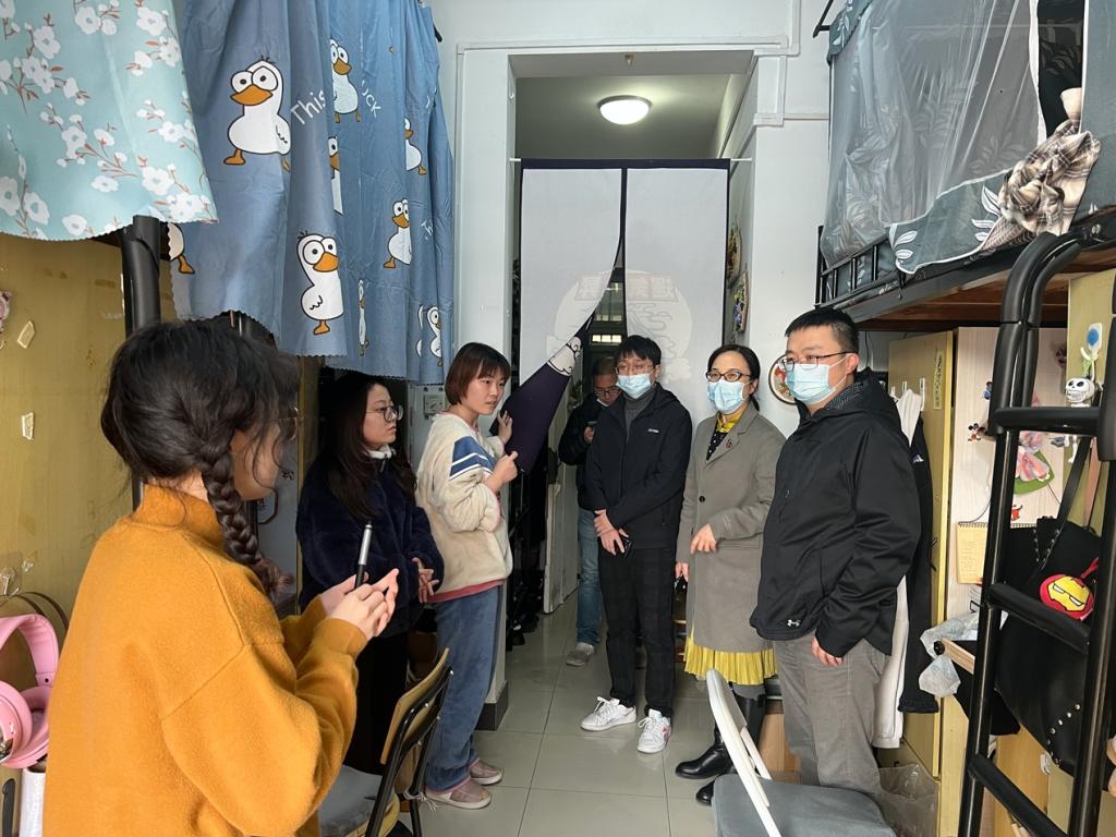 领导分两组分别对东和、西和学生宿舍进行安全检查。检查过程中,查看了宿舍的整体环境、电器设备使用情况以及走廊杂物堆放情况,对寝室用电安全、环境卫生、文化建设等方面做出了具体要求。