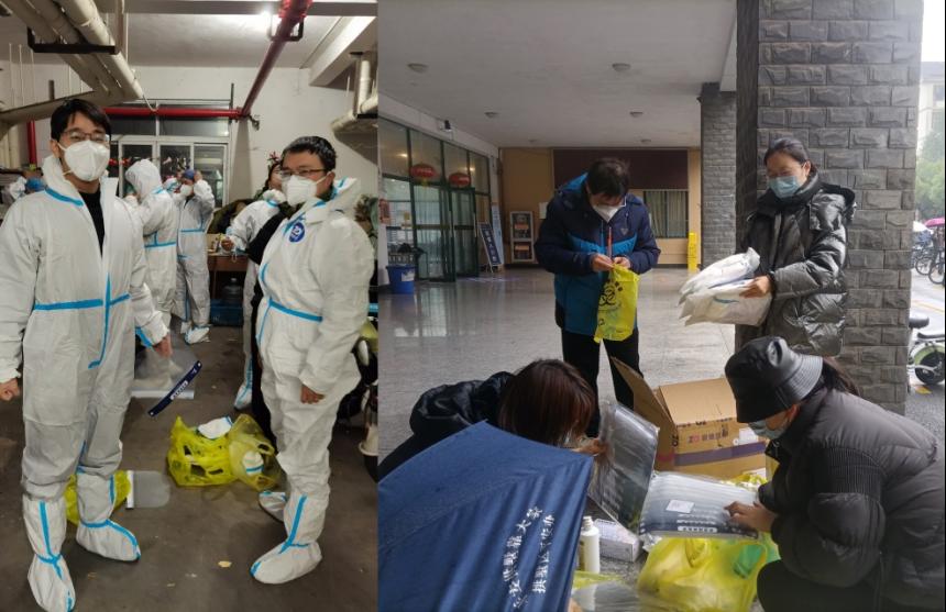 的教工志愿者们积极投身志愿服务,化身“大白”,将生活物资送到隔离点同学们的手中,他们的身影汇聚成了一道道冬日里的暖阳。