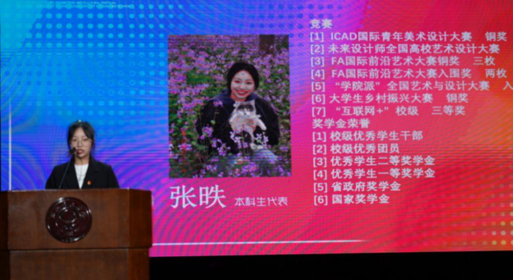 还邀请了优秀本科毕业生代表及研究生代表发言,优秀的榜样激励学子们挑战未来,不断超越自我。