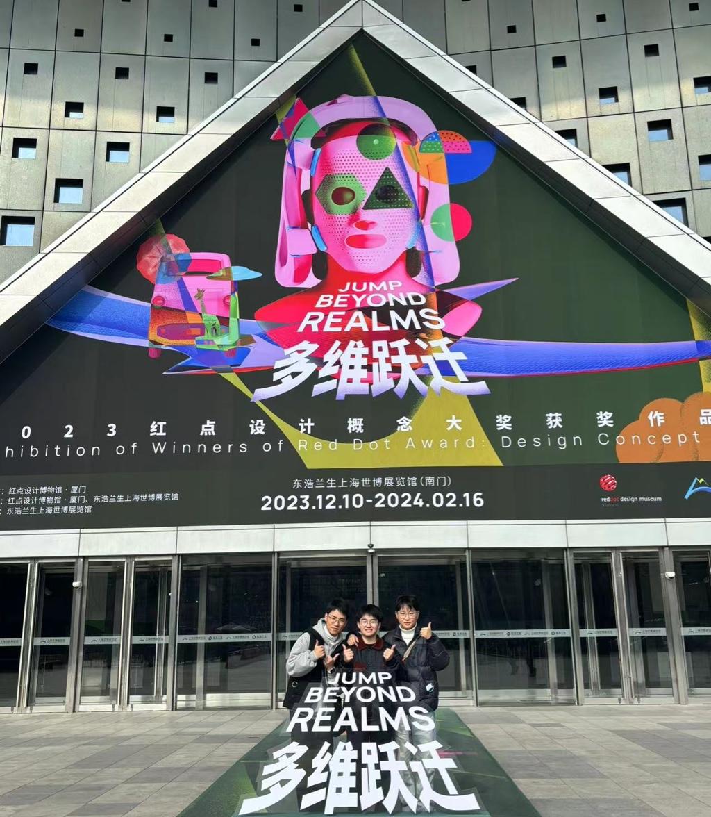 工业设计系师生团队创作的获奖作品《3D printing head radiotherapy positioning mask》被红点奖官方选为2023年度作品年鉴封面及本次展览主视觉作品。1月2日,获奖学生代表赴上海世博展览馆参加本次展览,现场领略每件作品背后的独特设计理念、感受创新思维的碰撞,与全球优秀设计师共同学习交流。