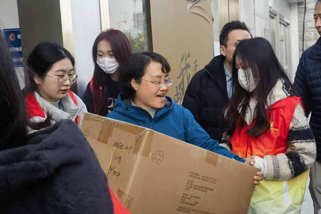 党委书记詹俊、院长郑林欣、服工系负责人以及学生志愿者齐心协力,共同将这批爱心冬衣冬袜装载上发往新疆阿克苏的货车。这是继上一次援疆行动后的再次协力,预计五天后,这批承载着浙江企业爱意与善心的冬衣冬袜将运抵新疆阿克苏,为当地的学生和村民送去温暖和关爱。