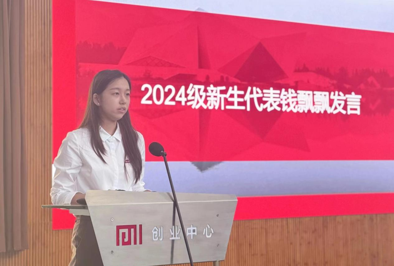 2024级研究生新生钱飘飘代表全体新生发言,谈了自己对研究生学习生活的认识,表达了对求学之路即将开启的新篇章无比憧憬之情,并对未来三年的工作学习作出了相关的规划,号召同学们一起以青春为笔,时光为墨,绘制一副无悔的青春画卷。