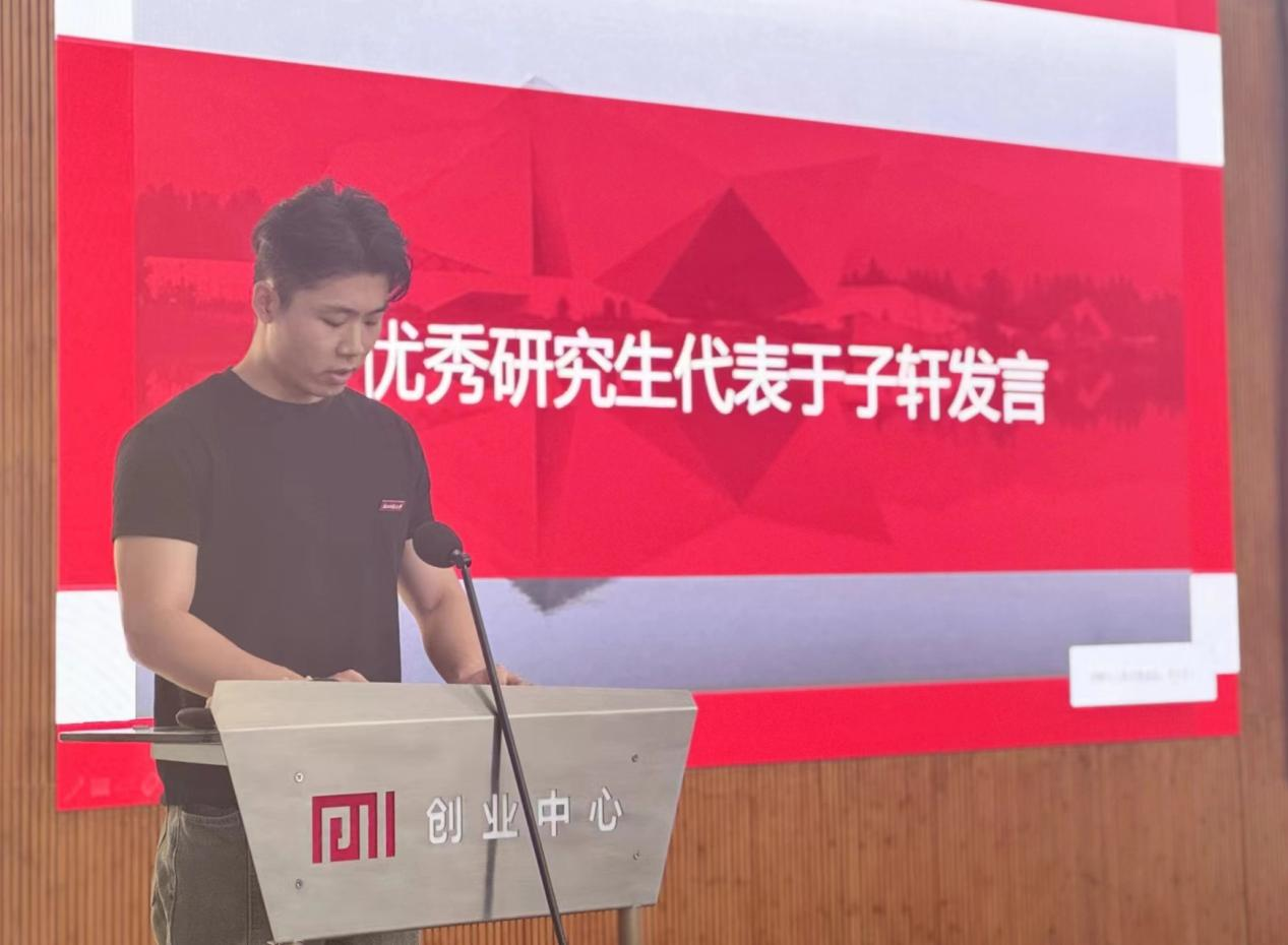 优秀研究生代表于子轩进行了发言,结合自身的理论学习和实践创新经历,为新生介绍了如何做好研究生学习阶段的规划安排,向全体新生传递了学习者、研究者要树立明确的目标,应具备严谨的求真态度,掌握科学的研究方法的理念,相信对大家今后三年的学习生活会有所启发、有所助益。
