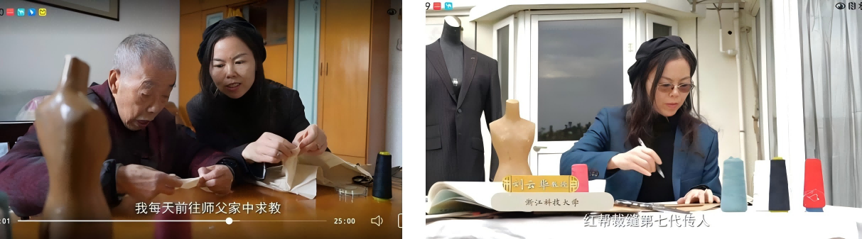央视记者在节目中,记录了刘云华教授与其师江继明,两代红帮二十年载的传承故事。自2005年起,刘云华教授开始系统研究红帮文化,师从第六代红帮传人江继明,从捏针、断线、纳布等基础功夫学起,深入钻研“九势”“十六字诀”等红帮核心技艺精髓。